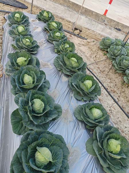 定植后65天可采收,高圆球型,紧实度好,蜡粉较少,叶色绿;单球重725g,球高13.5cm,球宽12.5cm。